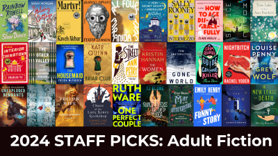 The West Des Moines Public Library Staff is sharing their favorite adult fiction picks from the year below! You can put the books on hold by clicking the titles, or you can stop by the display in front of the Accounts and Checkout Desk and see them in-person.