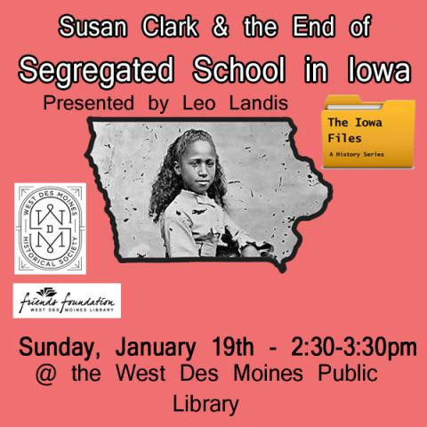 Susan Clark, an 11-year old from Muscatine, was the plaintiff in the case that led to the end of segregated schools in Iowa in 1868, 86 years before Brown v. Board of Education. Even after the Clark case some towns including Des Moines maintained separate schools for African-Americans into the 1870s.