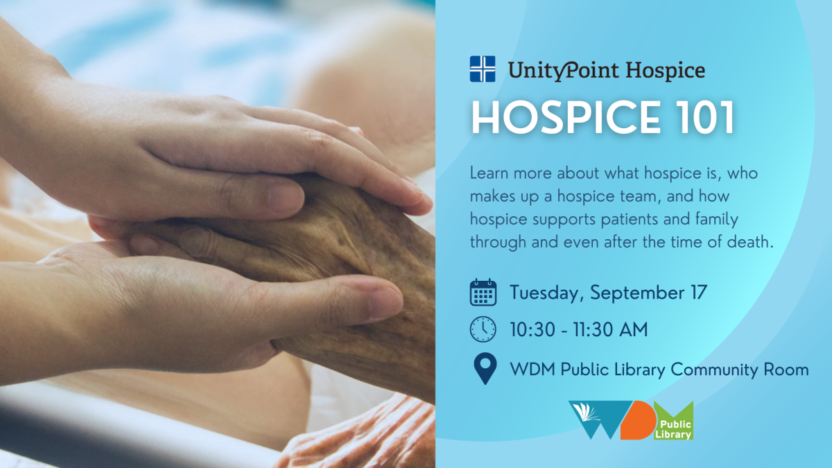 photo of hands holding someone's hand; date/time of program